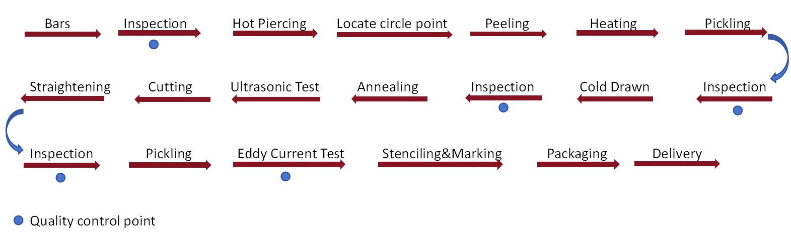 • The annual production capacity can reach 60,000 tons under years of development. Every-year R&D investment and a team of technicians enable strong R&D capability. HAOTAN has full system of production with advanced equipment, such as perforation, pickling, cold rolling, cold drawing, straightening, flaw detection, tensile test and machining.